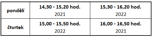 Děti jsou rozděleny do jednotlivých skupin podle věku – měsíc a rok narození dětí je uveden níže v tabulce.